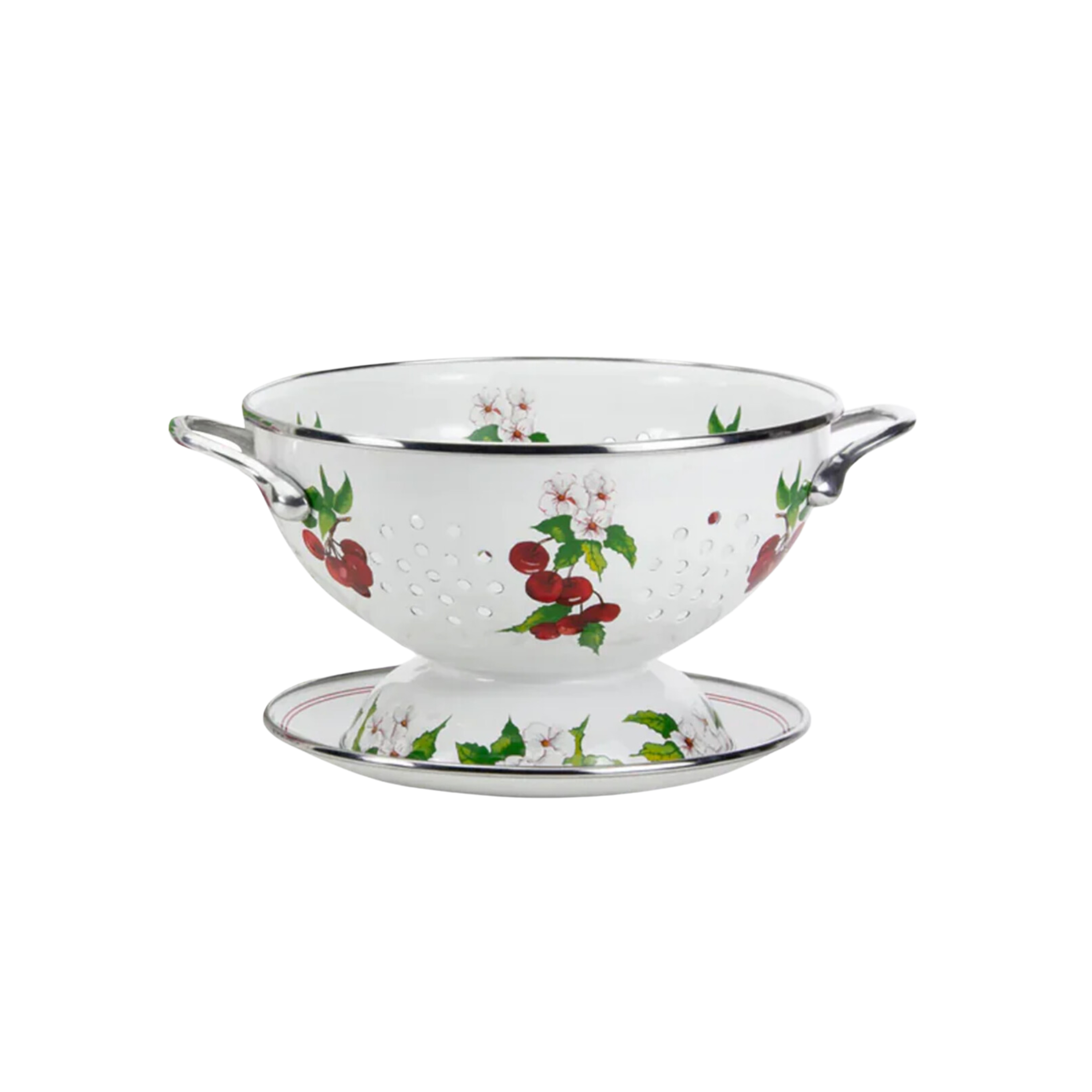 Coated porcelain enamel and trimmed with stainless steel to prevent chipping, the Colander Set in Cherry adds a refreshing feel to meal prep and service whether draining pasta, washing herbs, or cleaning and presenting cherries.