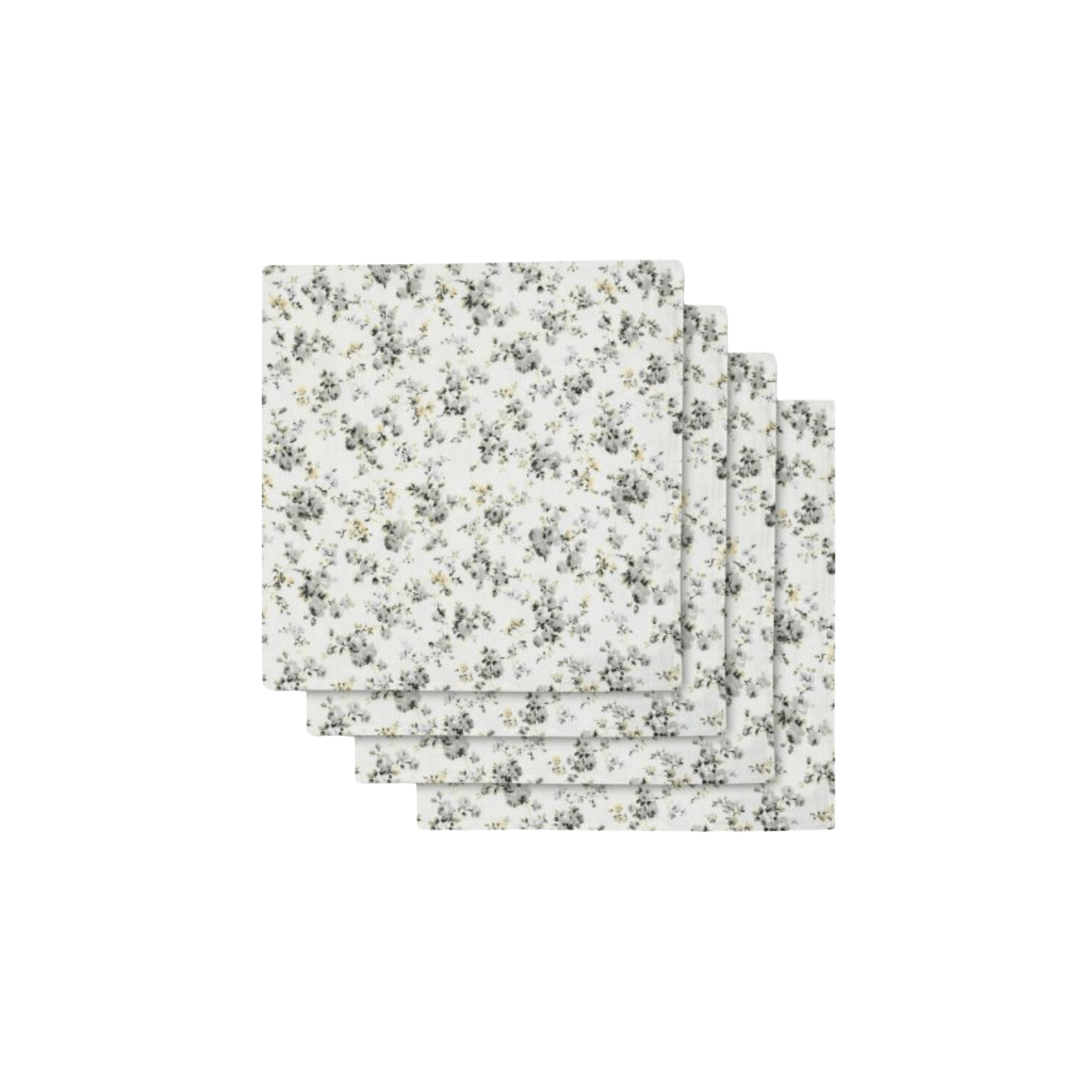 Beautiful floral napkins featuring light blue, moss green, butter yellow and gray tones. Lovely paired with the Doily Placemat.