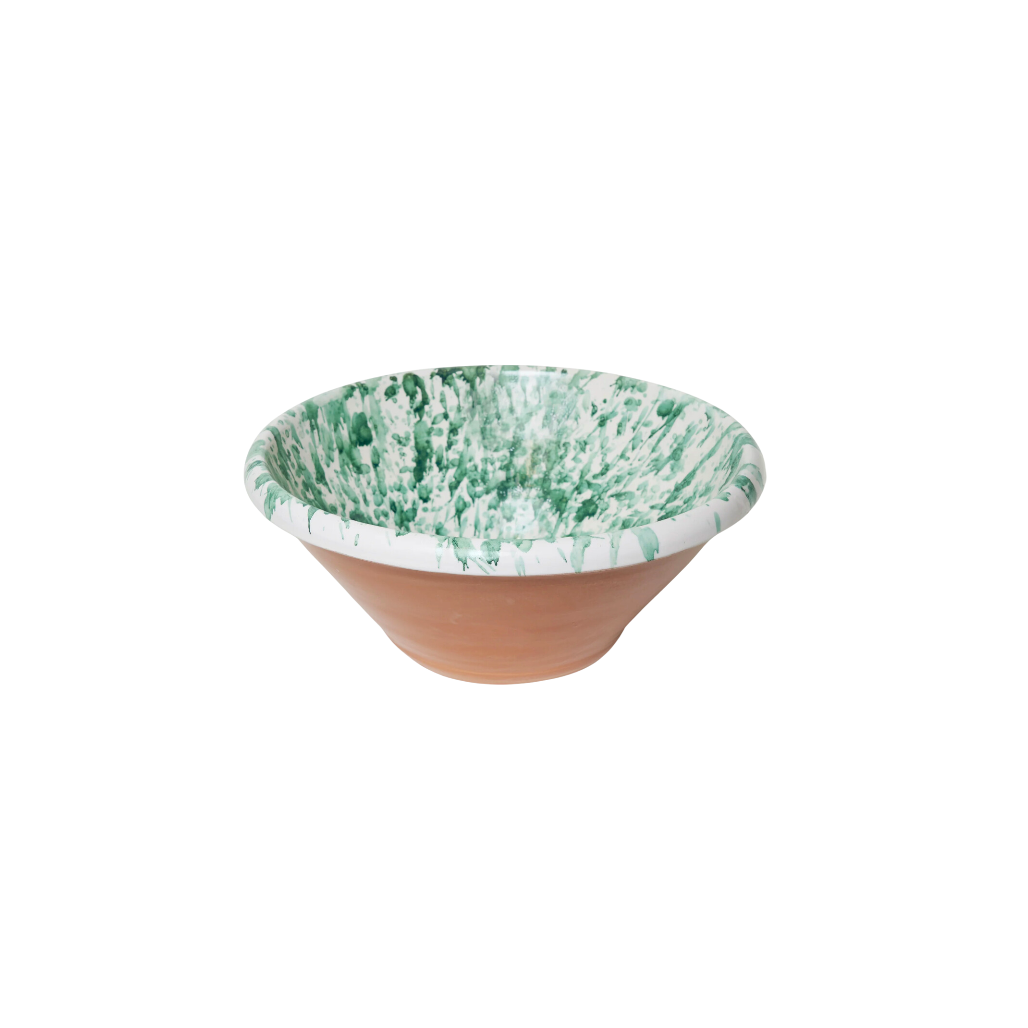 Handmade splatterware terra cotta mixing bowl for whipping up your favorite batters or serving salads and sides.