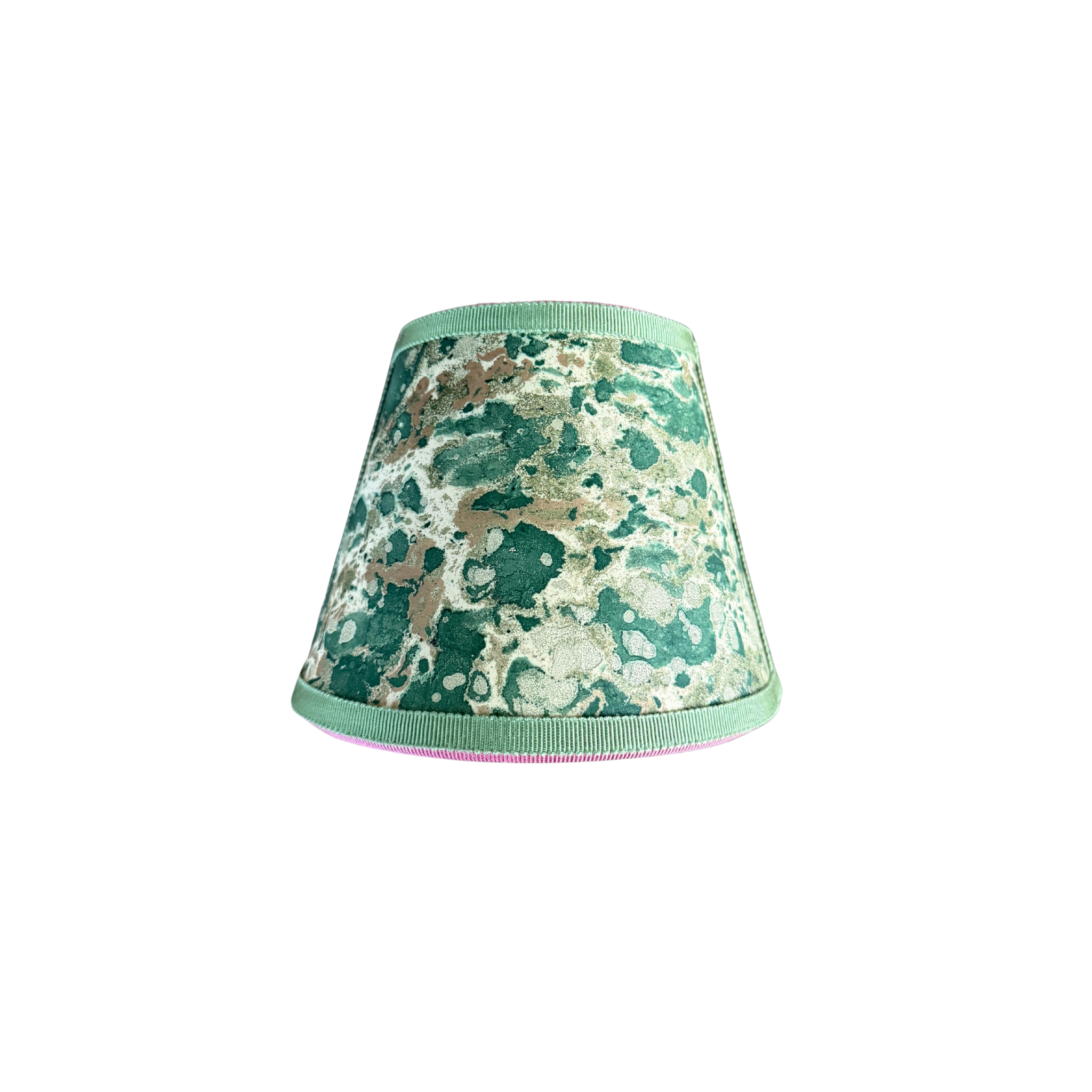 Marble paper trimmed with grosgrain, each one is a small piece of wall art for your home. Comes with plug and bulb.