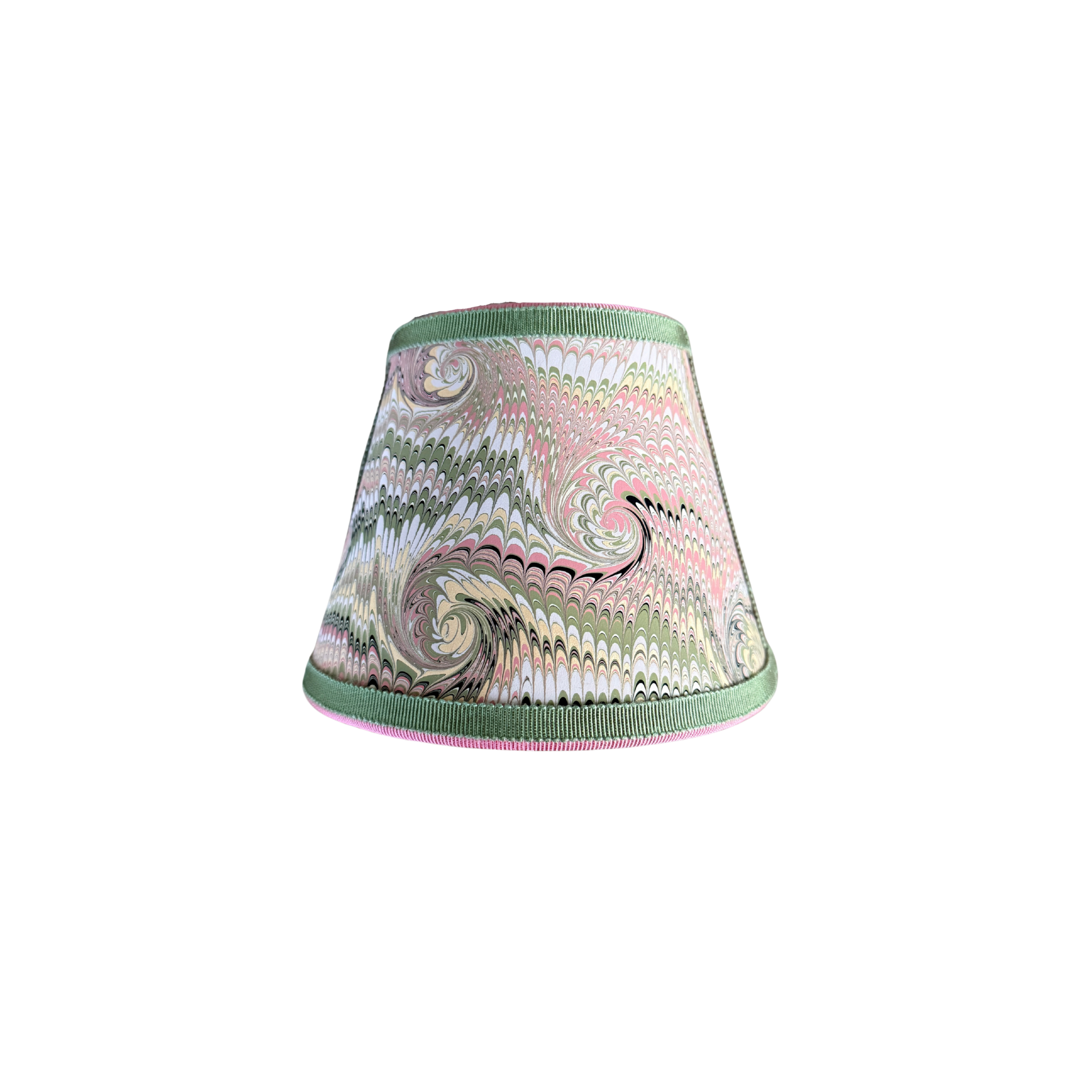Marble paper trimmed with grosgrain, each one is a small piece of wall art for your home. Comes with plug and bulb.