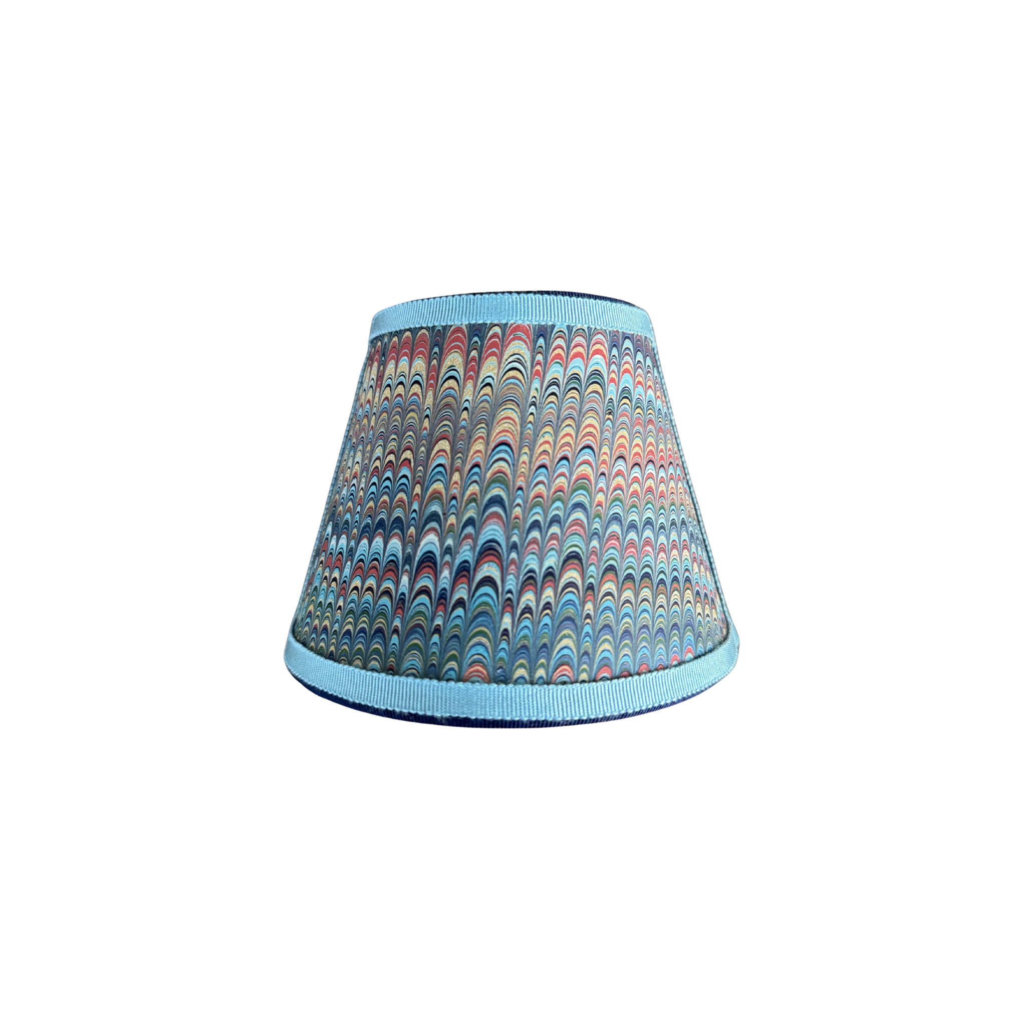 Marble paper trimmed with grosgrain, each one is a small piece of wall art for your home. Comes with plug and bulb.
