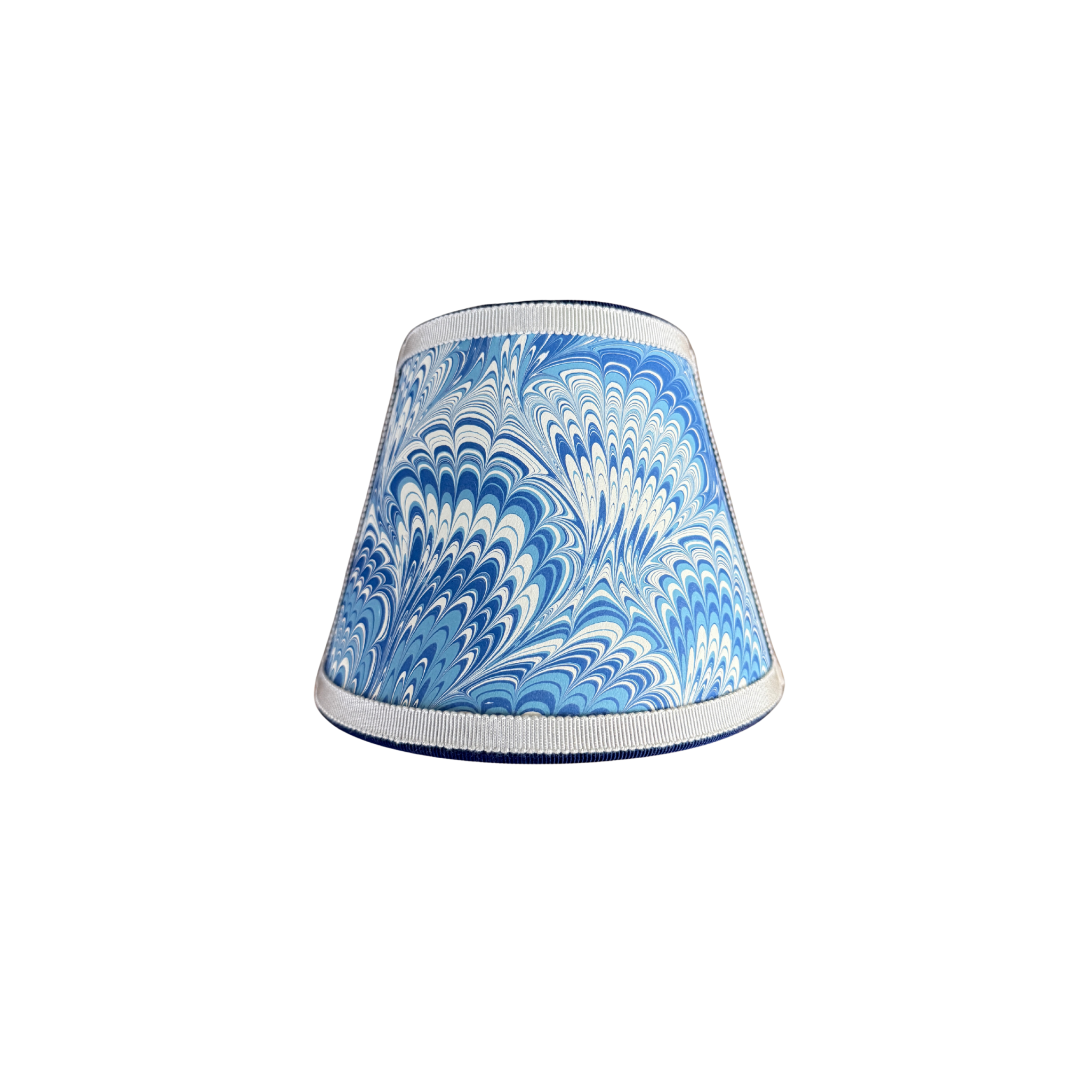 Marble paper trimmed with grosgrain, each one is a small piece of wall art for your home. Comes with plug and bulb.