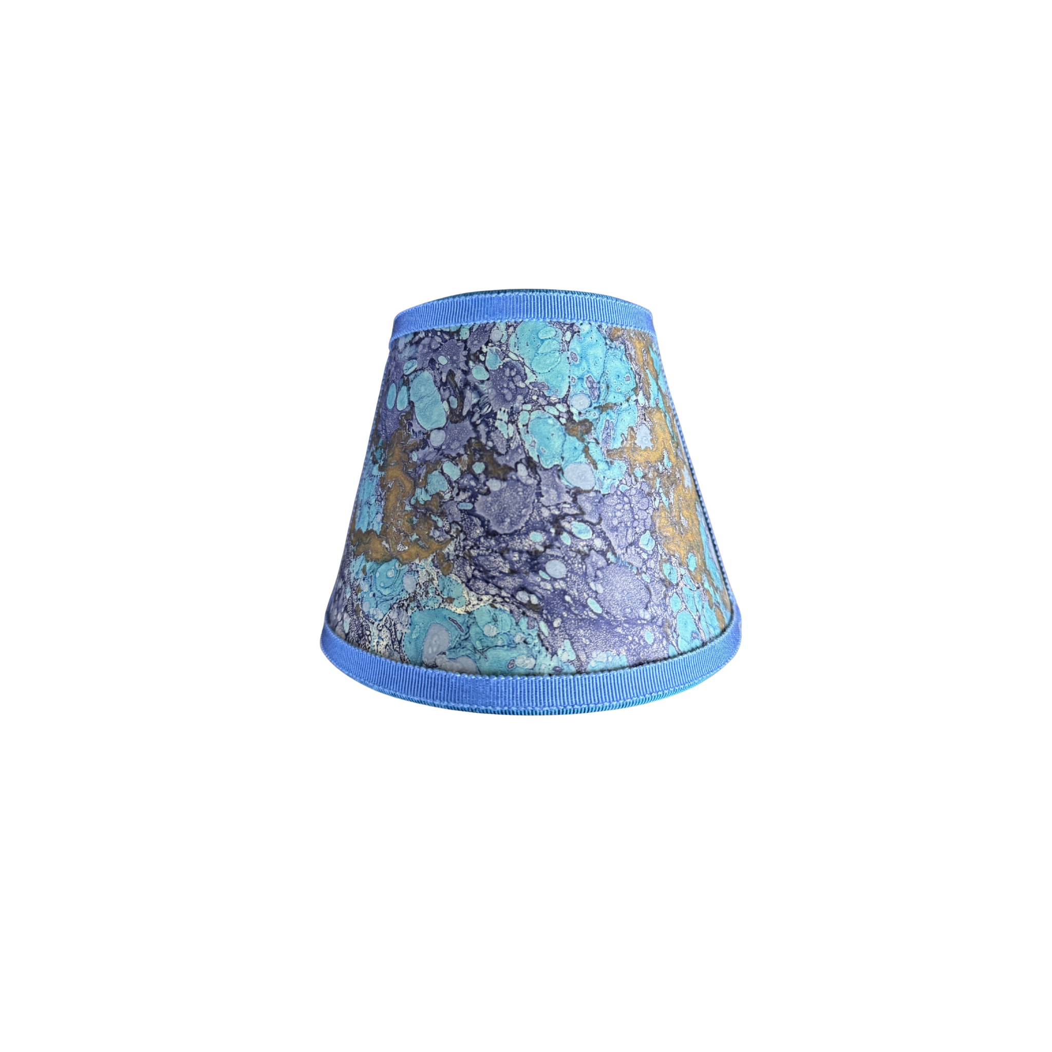 Marble paper trimmed with grosgrain, each one is a small piece of wall art for your home. Comes with plug and bulb.