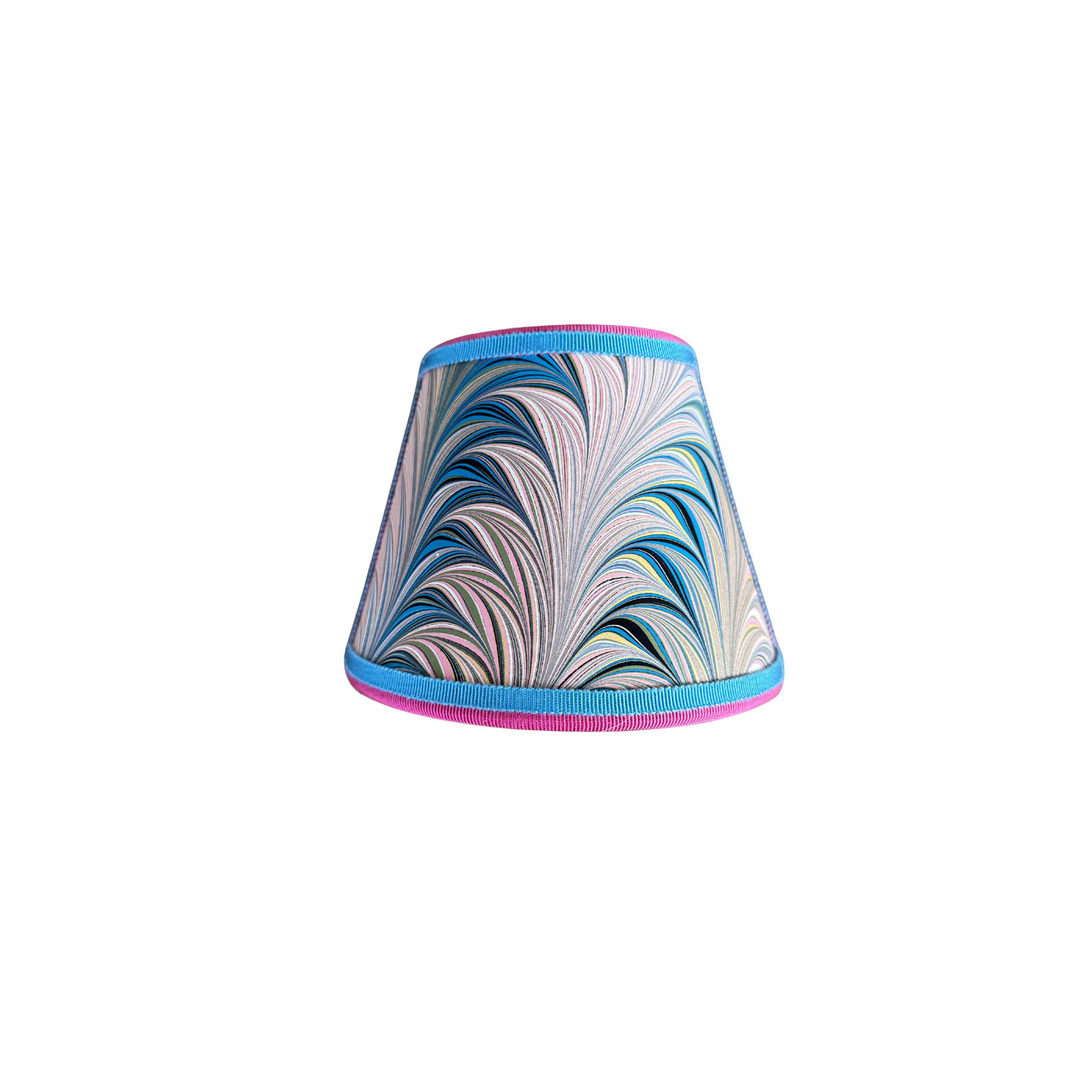 Marble paper trimmed with grosgrain, each one is a small piece of wall art for your home. Comes with plug and bulb.