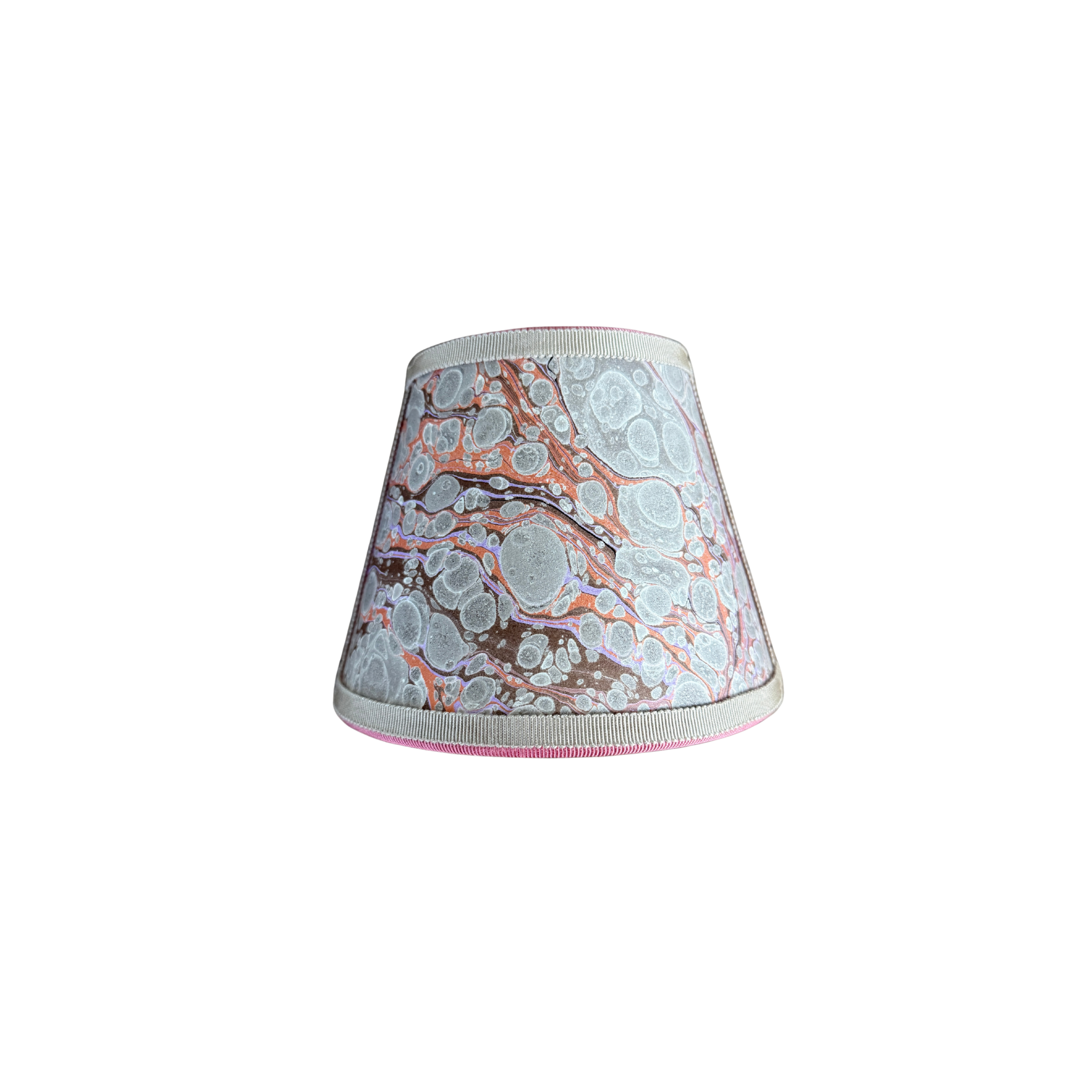 Marble paper trimmed with grosgrain, each one is a small piece of wall art for your home. Comes with plug and bulb.