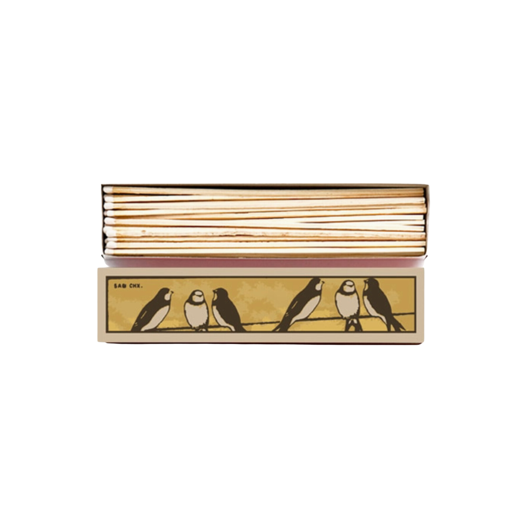 Containing our extra long match sticks, these make lighting fires and storm lanterns a breeze! This beautiful swallow matchbox in gorgeous gold is the perfect addition to the home. Designed in collaboration with the Natural History Museum. Approximately 125 safety matches.