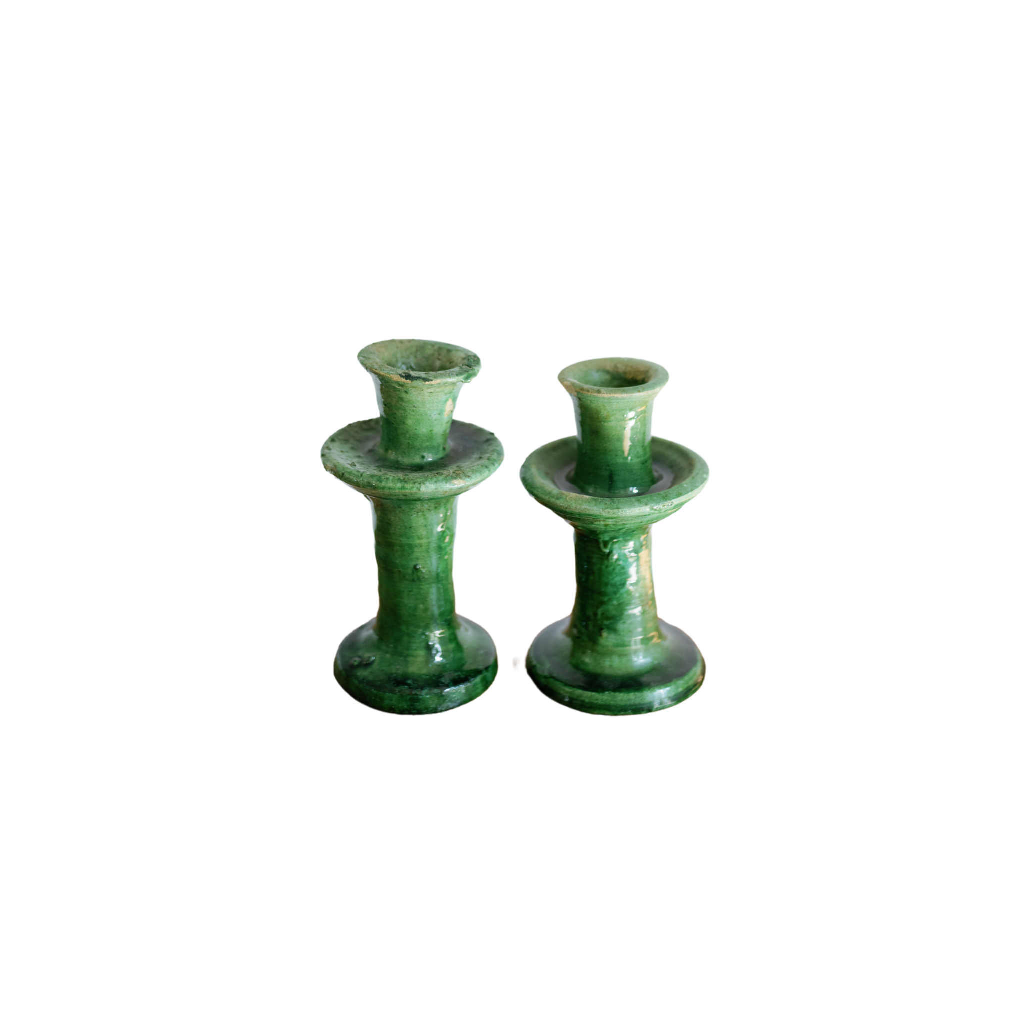 Crafted by artisans in Tamegroute, these candlesticks boast a distinct tapered shape and sometimes include imperfections.